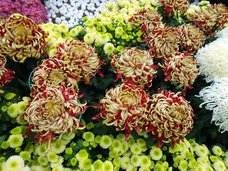 士林官邸外面有棵夫妻树,两棵不同品种的树,竟然就这样纠缠在一起。今天正好士林官邸刚开始举办名为《手舞菊蹈》的菊花的展览会。虽然下着大雨,单阻止不了那些人来赏菊的兴致,原因无他,都来看看宋美玲生前最喜欢菊花和玫瑰,顺便看一看她和蒋介石的故居。就连他们以前使用的轿车也还在哦。官邸里的菊花都好大一颗哦,可惜玫瑰花都所剩无几了。