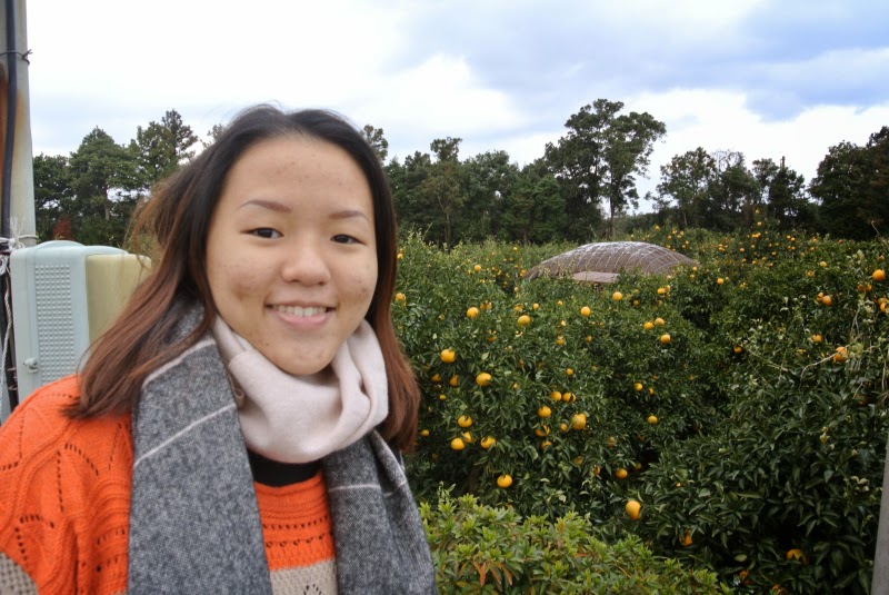一大片的橘子园,不过这些都是[夏橘],只有夏天才能摘来吃。这个季节可以拿来当石头来用,硬邦邦的。